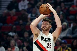 上半场比赛,开拓者中锋克林根面对文班亚马攻防都被压制,没有什么好办法,他出战12分钟,4中1,三分3中0,拿到2分3篮板1助攻,正负值-11。